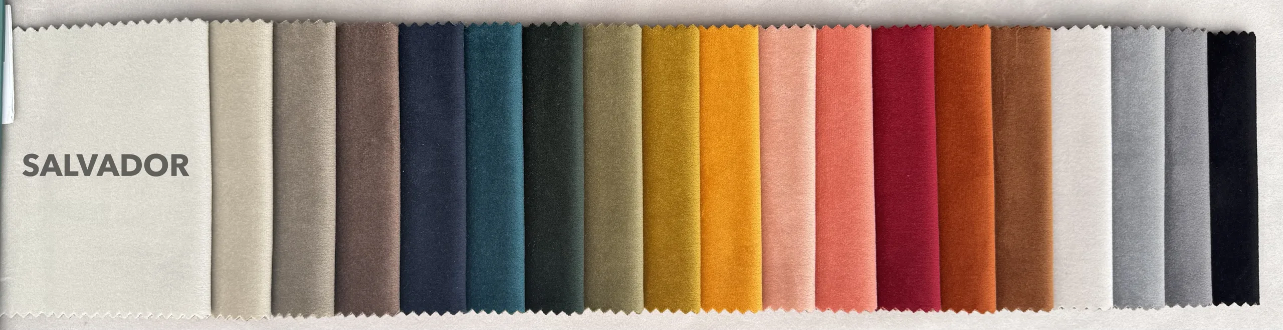 SALVADOR: Gyönyörű, elegáns hatású plüss bútorszövet, amely a legdivatosabb színekből válogatott palettával került piacra. Plüss szövethez méltó kellemes, puha tapintás jellemzi. A vele készült bútorok sok-sok kellemetlen pillanattól óvják meg az újdonsült tulajdonost, köszönhetően a folyadéklepergető tulajdonságának. Jó választás lehet családok számára hiszen állat és bababarát, illetve bolygóbarát tulajdonsággal is rendelkezik.